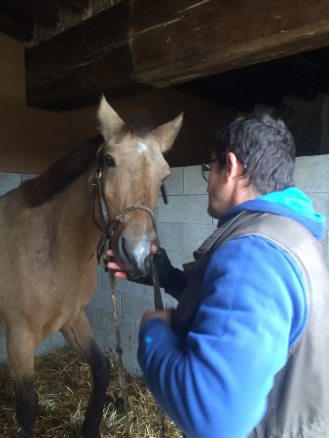 C'est donc un vrai soulagement, quand une fois arrivés à la ferme, le poulain descend sur ses 4 pieds. Juste quelques petites écorchures, et un postérieur un peu engorgé, mais rien de grave.