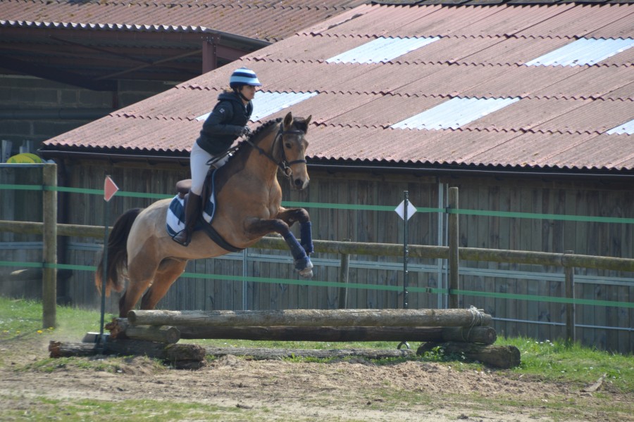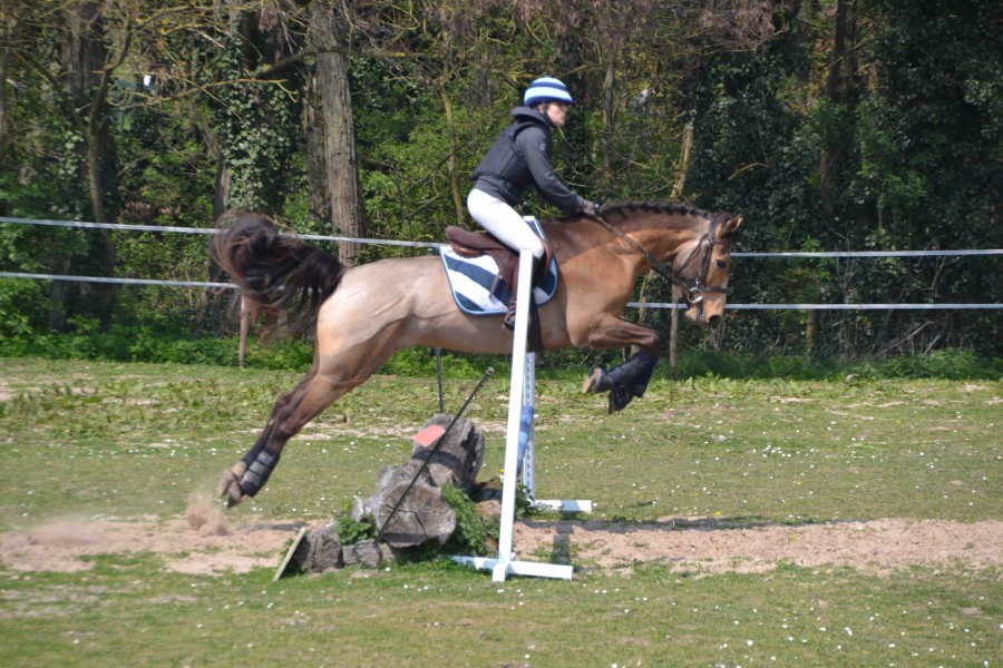 Sur le cross l'aprem, un peu le même problème, il est à peine enclenché au début, du coup il s’arrête sur le 2 qui était très regardant (directionnel avec une bute derrière) et au fur à et mesure il s’enclenche. Il se méfiait quand même beaucoup à l’abord des obstacles et j’ai dû garder fort mes jambes, d’où des sauts un peu acrobatiques parfois, mais il a tout passé. Je suis fière de lui, il n’a pas non plus une grande expérience du cross et il a été adorable.