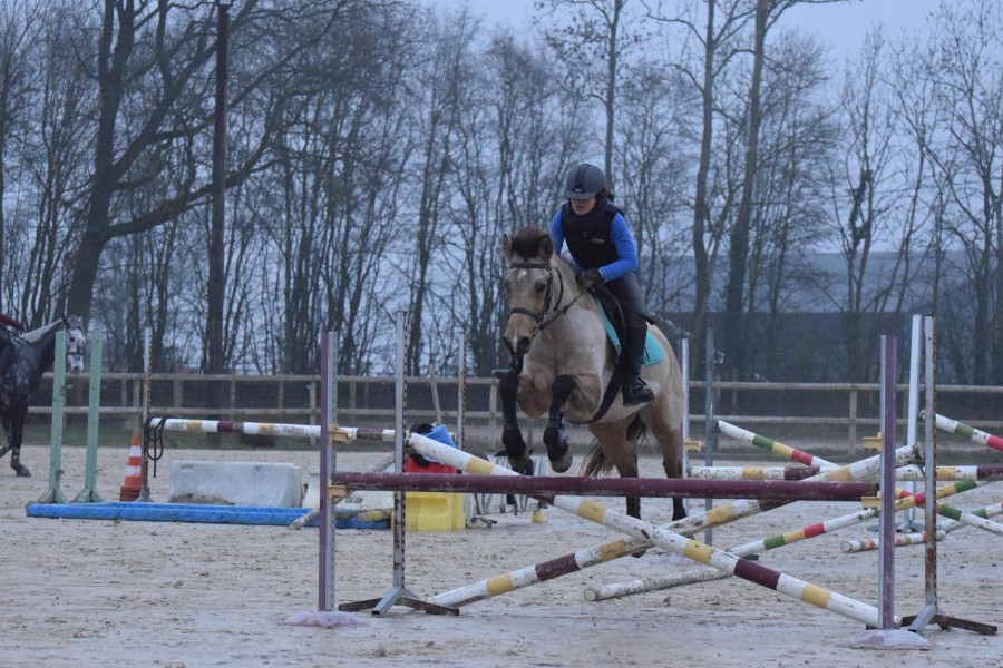 Concours plus réussi que la dernière fois: sans faute en club 2 avec un poney plus concentré et plus allant. Le side pull lui réussit bien, j'ai eu plusieurs compliments de personnes qui le trouvaient mieux. Encore des choses à améliorer, on enchaine les sauts en mode " Les mains basses, les mains basses " ou je m'applique bien et les " Marie voyage, donc ses mains elle sait plus où les mettre " parce que je me fais déculasser par des gros sauts. Il était un peu chaud patate à la détente et du coup je crois que je le laisse pas assez avancer, je l'arme, et ça fait poney à ressort. Je trouve ça positif quand même, il a bien sauté je trouve.