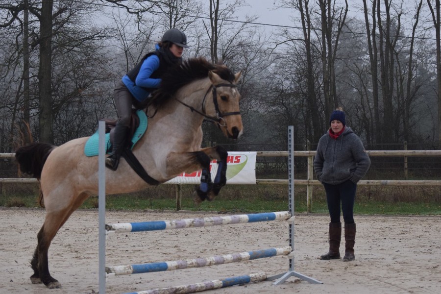 Le petit zozo qui travaille bien. J'avais demandé à ma prof de travailler les doubles. Du coup elle m'a mis une ligne de 4 obstacles à une foulée. Je suis fière de mon poney qui s'est est sorti très honorablement. Moi par contre je me suis fait secouer, je savais pas quoi faire de mes mains, j'ai fini par les mettre dans la crinière.