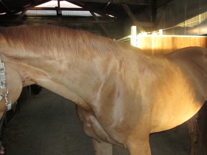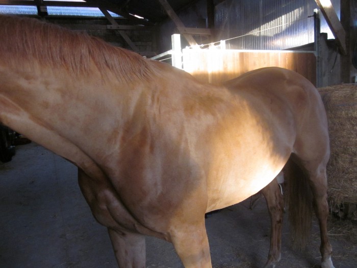 il commence a faire effet. je le sens un peu moins tendu au boxe et surtout il n'est pas parti en chiasse quand il a entendu le van et que je lui ai mis les protections de transport pour l'emmener à la clinique.