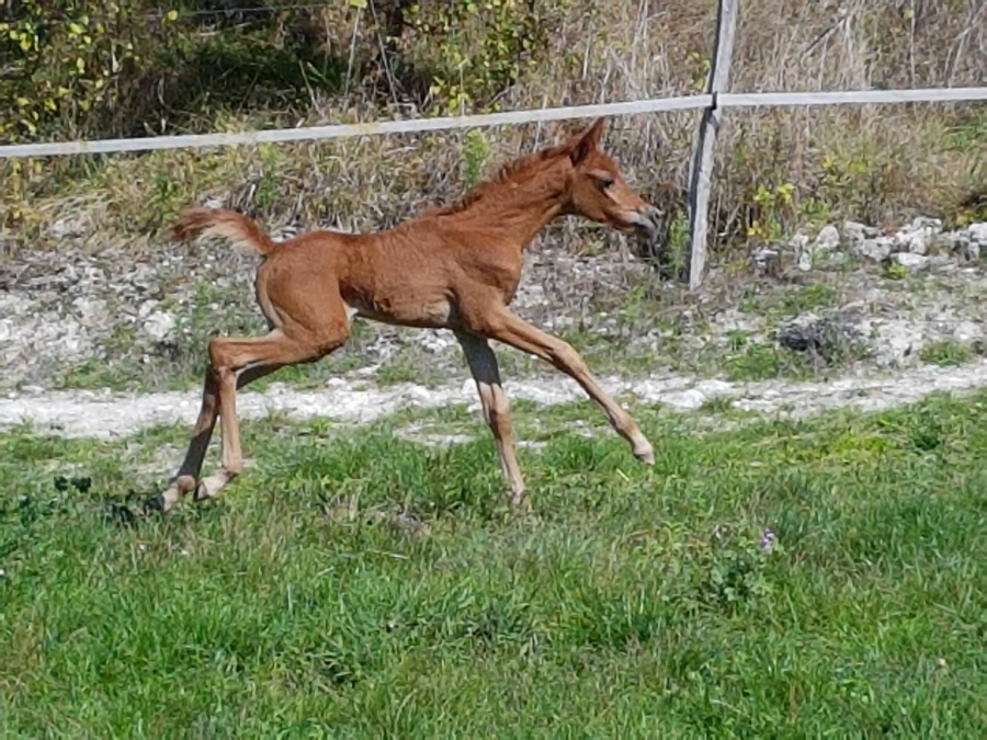 Hamarkhys al Tahouma, la dernière née x Morhag tard dans la saison, chez des amis éleveurs.