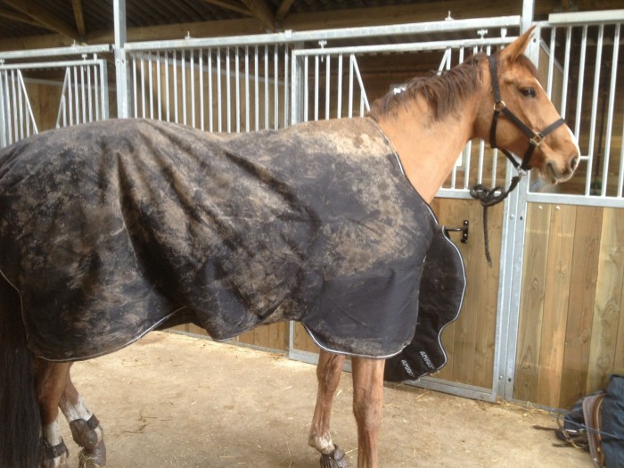 Actuellement, je possède deux polaires, une très fine de décathlon sans attaches ventrales, une Lamicell épaisse avec attaches ventrales, une couverture de boxe Rambo de horseware de 300g avec attaches ventrales, une couverture de paddock légère doublée polaire attaches ventrales et cuisses)