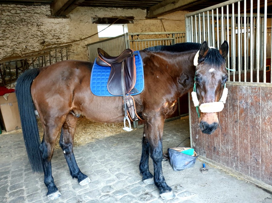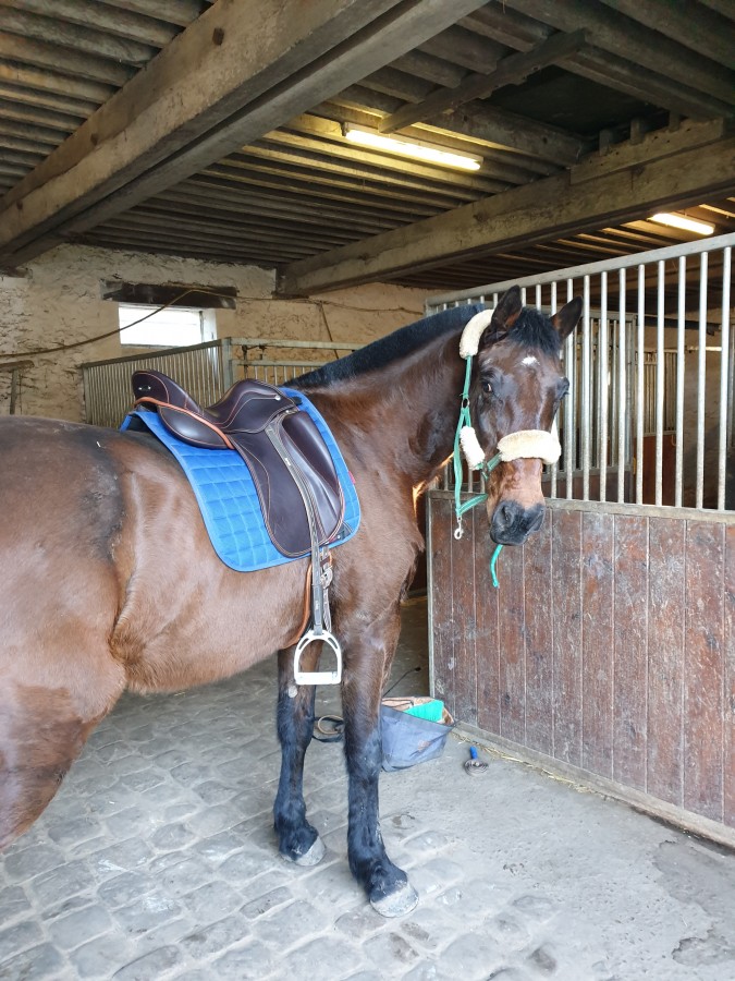 on a même réussi à faire des épaules en dedans au trot ainsi que des sessions au trot ! (bon certes elles n'étaient pas très académiques mais elles étaient là ! et sans le porter)