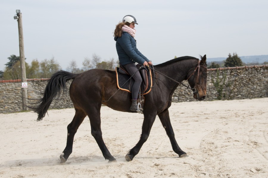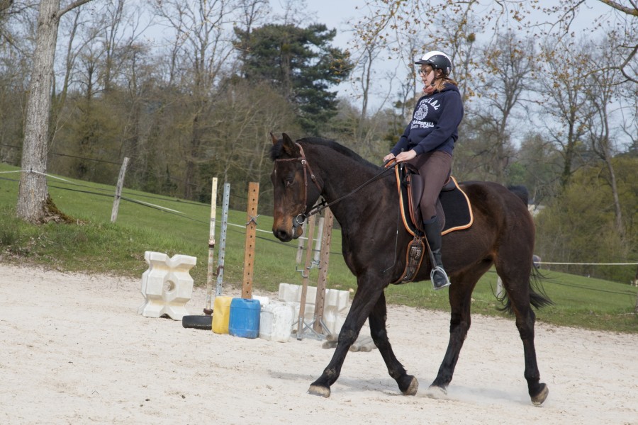 travail sur des barres au sol au trot, 3 au début puis 6 ensuite.
