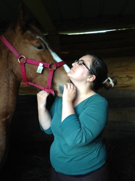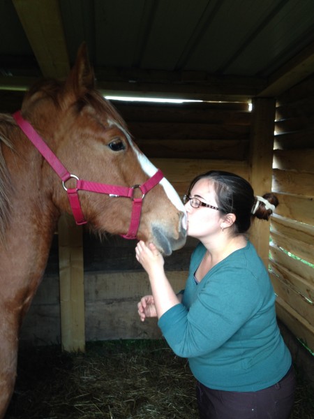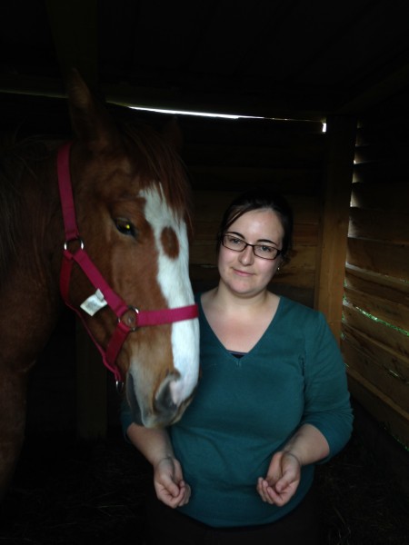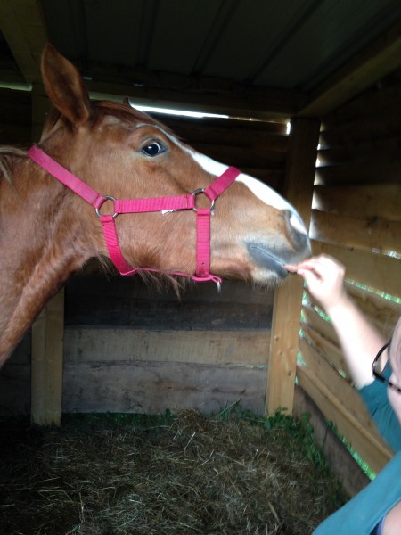 Du coup elle c'est raccrochée à moi je pense car tous loes soir je passait 2/3h avec elle à faire des tas de foin partout dans le paddock pour qu'elle puisse manger, du coup elle a assez vite accepté le licol et le fait de marcher en main. Je venais la sauver un peu je pense.