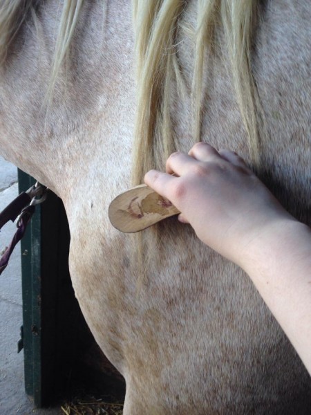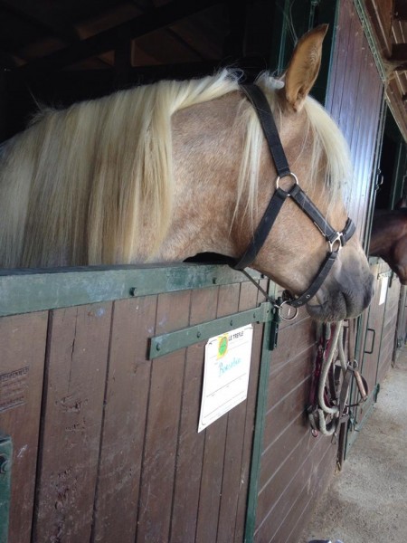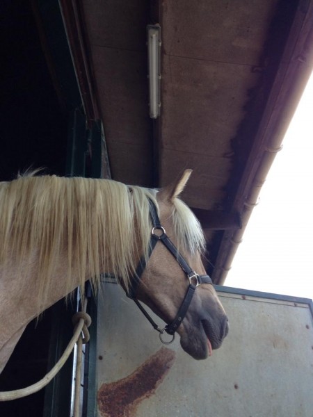 Il avait eu la bonne idée de se mettre à l'abris donc au moins on était au sec . mais il était tout crasseux (on ne distinguais presque pas sa robe tellement il y avait de boue sauf sous la crinière)