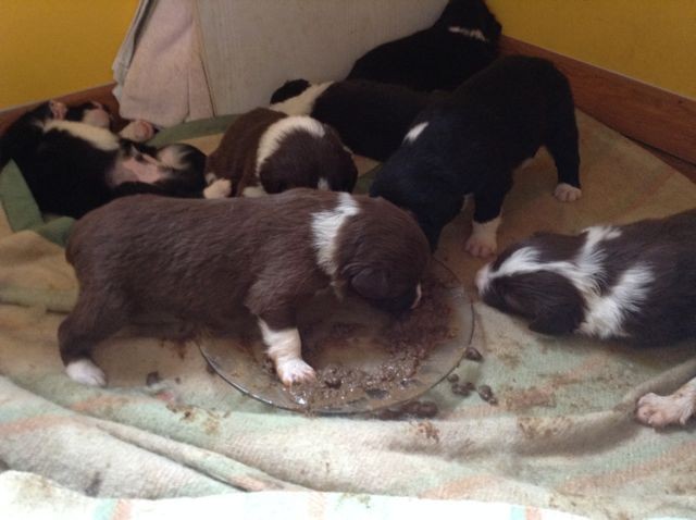 Hier ma chienne une petite border collie de 4 ans a eu 8 magnifiques chiots ( à l'écho le veto m'avait dit 3, surprise ...)