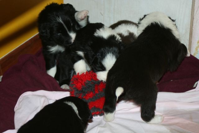 Hier ma chienne une petite border collie de 4 ans a eu 8 magnifiques chiots ( à l'écho le veto m'avait dit 3, surprise ...)