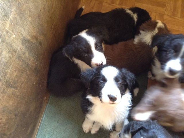 Hier ma chienne une petite border collie de 4 ans a eu 8 magnifiques chiots ( à l'écho le veto m'avait dit 3, surprise ...)