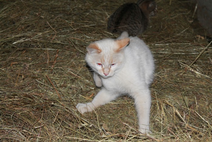 Haha, toi aussi t'as un chat de l'enfer ? On en a 6 à la maison, dont une qui, à 3 mois déjà, attaquait des chiens type berger blanc de suisse.