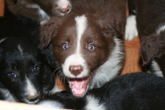 Hier ma chienne une petite border collie de 4 ans a eu 8 magnifiques chiots ( à l'écho le veto m'avait dit 3, surprise ...)