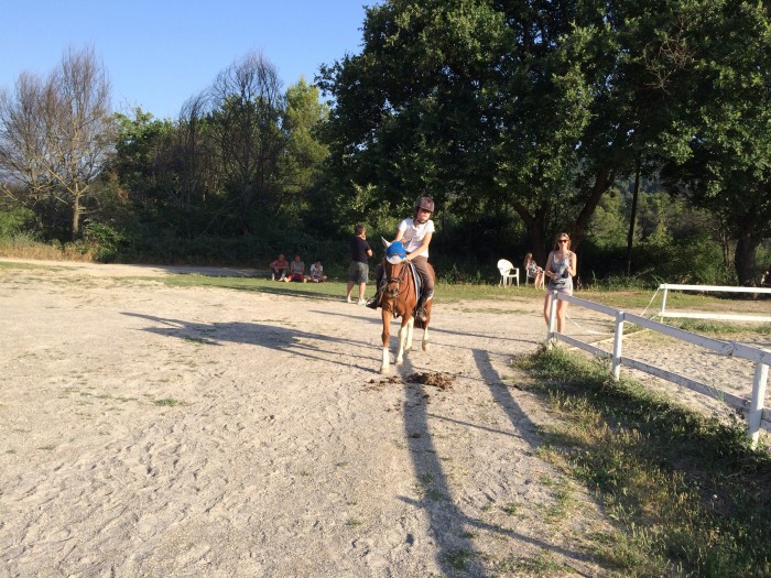 bref au pas vasco est bien je m habitue a la selle , on trotte extra bonneattitude por lui et bonne position pour moi. Et la c est le moment du galop .... a gauvhe il part a fond meme en cercle ... donc on arrete le mmassacre car c est pas le but , et main droite tip top fin un peu rapide mais j arrive le faire redescendre et a etre bien assise dans ma selle pas comme a main gauvhe