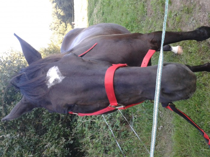 Une ponette très légère au pas, mais la tête en l'air au galop ! Elle a le dos peut être un peu courbaturé, et en plus elle était gênée par les mouches. Enfin de toute façon c'était pas le but de l'exercice.