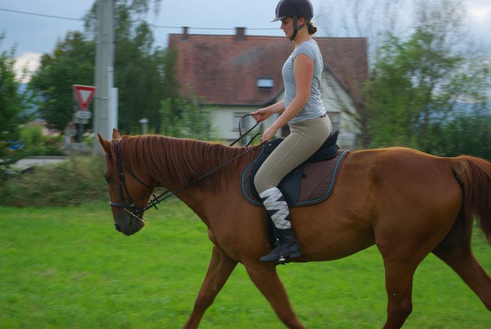 Aujourd'hui, retour après les cours, je décide d'aller voir Catsouille en vu d'un bon pansage et si je le sens, petite balade en main. Il faut savoir que l'hiver dernier, je m'étais fait tractée par un TractoCats en furie, qui m'avait péter un fusible sur la barre d'attache... depuis j'avais extrêmement peur de la sortir du pré et d'aller jusqu'au cabinet, où on prépare et monte. De plus, il faut suivre la route sur 200 m, mais sur les deux côtés il y a des chiens qui se jettent sur les clôtures et aboient, et des voitures qui se croient sur l'A1....
