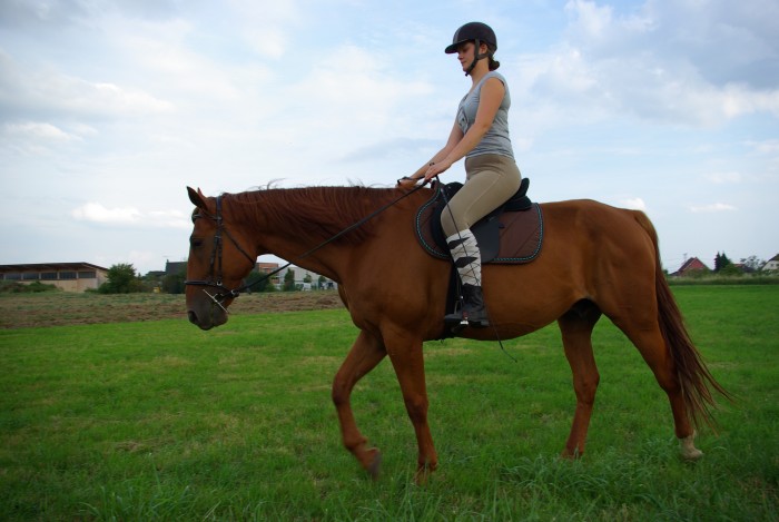 Après ça on cure et on graisse les sabots, tout en liberté c'est niquel ! Puis.. aller on tente la balade ! On se rend donc dans un petit chemin entouré d'arbres, Cat's est aux aguets mais elle double pas, reste à sa place ! On broute un peu au bout puis retour devant le cabinet puis on re broute, et enfin retour au pré, dans le calme comme à l'aller !