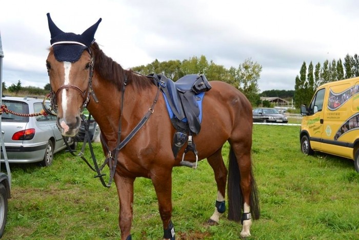 Il a déjà appris quelques tours de cirque par ses ex proprios comme la jambette (que je lui fait faire encore), le cabrer (que je ne lui demanderais jamais, il pourrait s'en servir sur moi) et d'autres! Il a une allure d'arabe Haha! Il me fait des obstacle de 50 cm facilement (en liberté)! Je ne monte pas dessus, c'est surtout un petit bout à s'occuper! Je ne sais pas plus vu que ça fait seulement un mois qu'il est à moi!