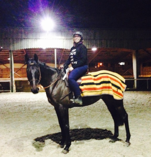 Après on a mis un oxer, suivi d'un vertical, sur une ligne plutôt longue. Uliade n'est pas confiante sur les oxers, je vous en avait déjà parlé ! Aujourd'hui nickel, elle m'a fait des gros sauts, en poussant fort sur les postérieurs. Elle reste difficile à canaliser à l'intérieur de la ligne, mais c'était pas catastrophique non plus.