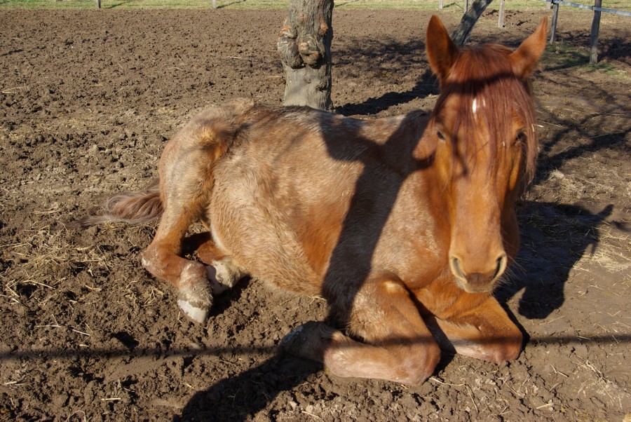 Je l'ai trouvée couchée dans son boxe, donc j'ai demandé à des filles du club de la marcher vu que je devais m'occuper de mon neveu. Elle continuait avec sa lèvre, mais n'a pas cherché à se rouler. Une heure plus tard tout était redevenu normal : elle mangeait, avait l'oeil vif, venait me voir et tout...