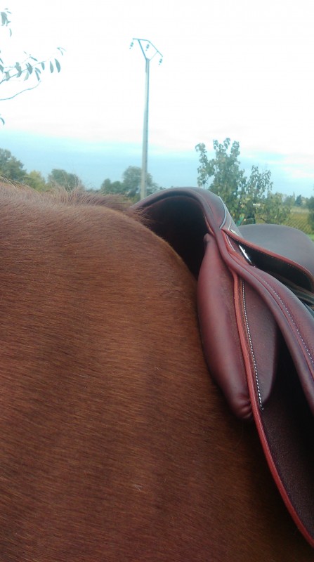 Didoo4143, alors peut être que j'hallucine je suis pas saddle fitter non plus, mais elle me semble pas très adaptée ta selle... Les quartiers lui bloquent totalement les épaules et l'arçon est trop étroit à mon sens... Je laisse les autre commenter pour voir si je me trompe mais c'est mon impression...
