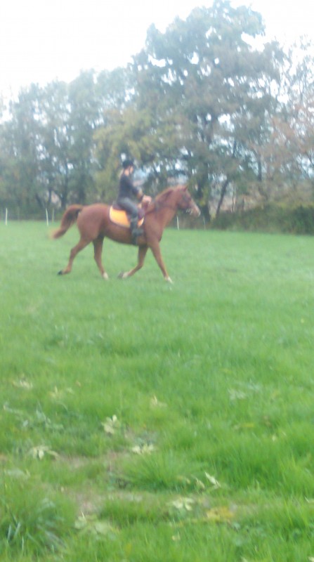 Aujourd'hui, ayant un cheval de 8 ans parfaitement remusclé et ayant beaucoup de force et d'énergie (assez chaud, qui n'est dans le calme et la décontraction que s'il bosse quasiment tous les jours) j'ai proposé à une amie d'enchainer 3 obstacles en serpentine à 80cm, car je n'avais pas enchainé de sauts depuis quasiment deux mois, et qu'on a un concours d'entrainement au club dimanche 25 qui va me servir de "tremplin" pour repartir sur les vrais terrains de concours. On a répété l'enchainement 3 fois et sauté 2 petits verticaux en détente avant. La séance a duré quasiment une heure, on faisait chacune notre tour, ça ne me semblait pas intense, mais apparemment ma monitrice a trouvé que c'était trop pour mon cheval vu qu'il avait fait quelques barres la veille.