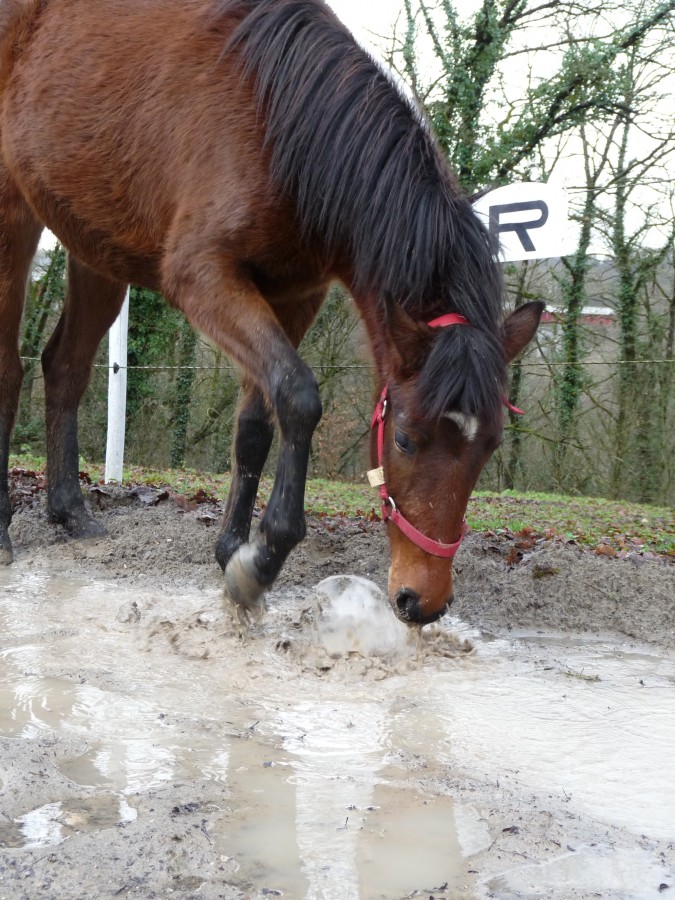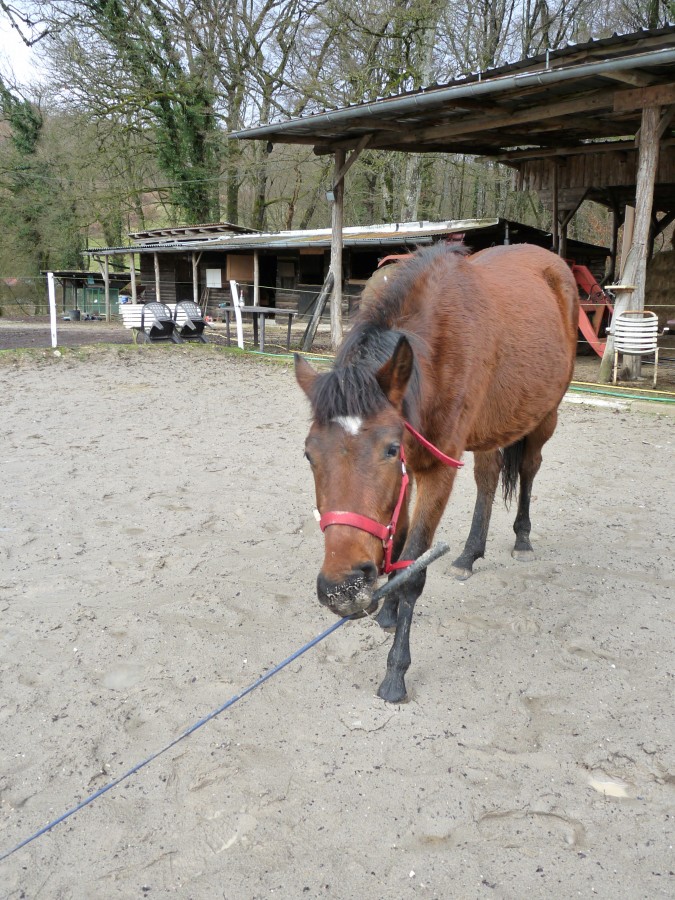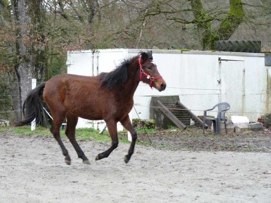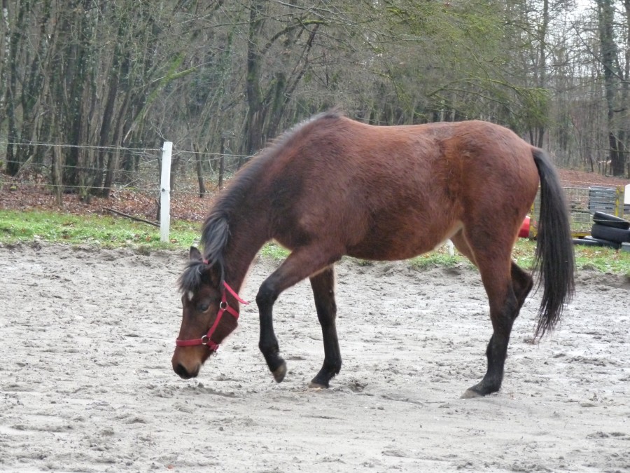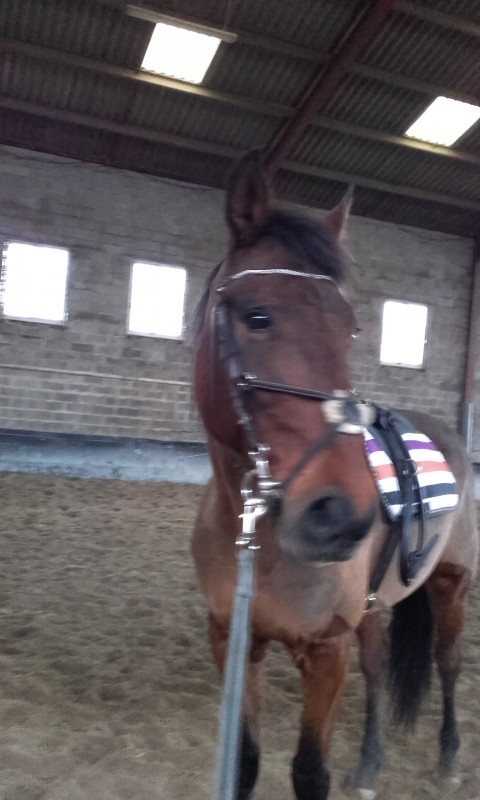 Pour Divine nous avons fait mise en selle mais en faisant pleins de choses différentes chasser les hanches , rentrer , allonger , transitions dans l'allure , transitions montante et descendante enfin pleins de choses ! Il était chaud , chaud lui aussi il m'a fait des galop/arrêt en faisant petit cabré bref bien excité avec des sauts de moutons , coups de cul , 2 semaines sans rien faire ça lui réussi