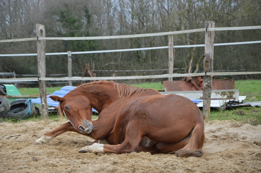Nolis était en mode joueur alors on a travaillé le cercle en liberté dans la carrière avec transition pas-trot-pas-arrêt avec désengagement de l'arrière main.