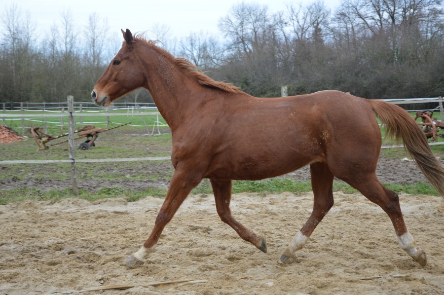 A main gauche, il était régulier sur son cercle et très réactif à mes demandes. Les transitions impeccable et le désengagement de l'arrière main les sabots dans les naseaux