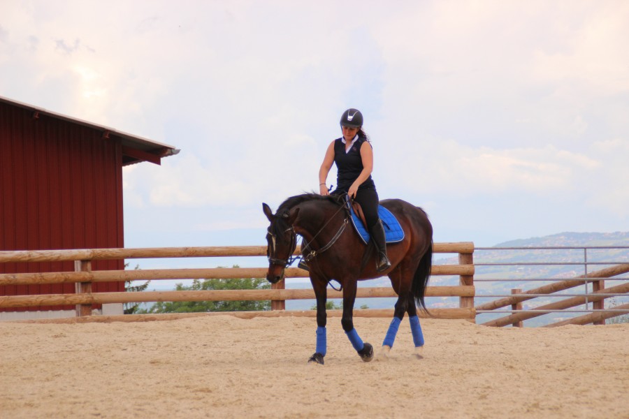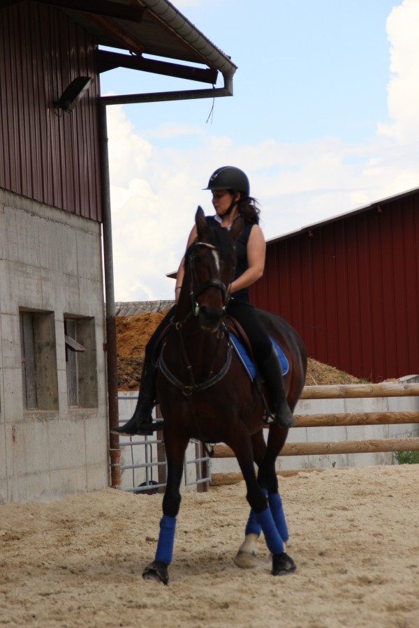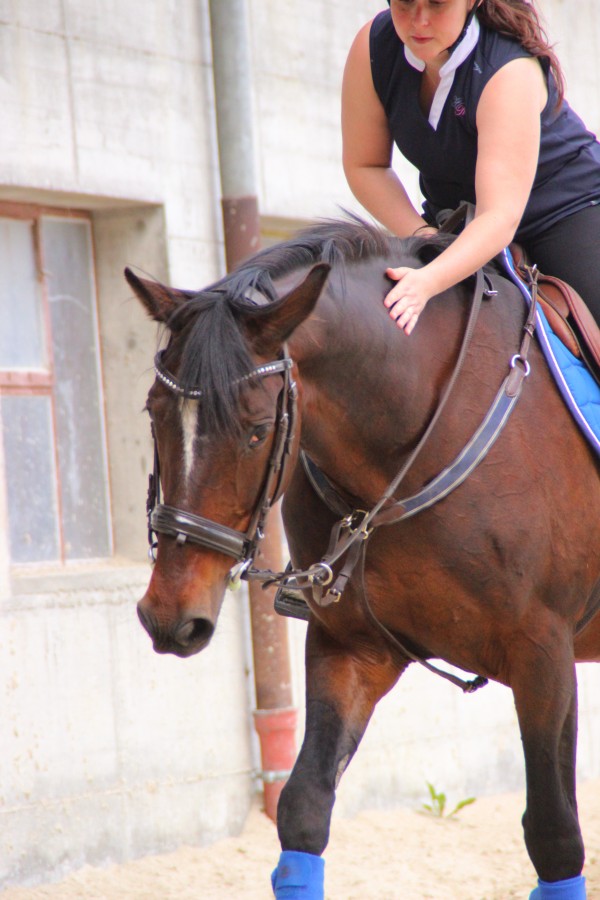 Samedi mat', ma sister partait en compétition de tir, donc on m'a déposée au club à 7h15! J'y ai croisé ma mono qui partait en concours, et on en a profité pour papoter. On discutait de Vad', de comment elle bossait: elle pense me la prendre quelques séances pour la mettre bien sur les 2 pistes et bosser en bride vu que je suis en vacs' en fin de semaine!