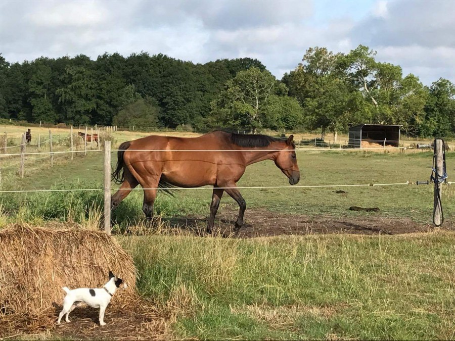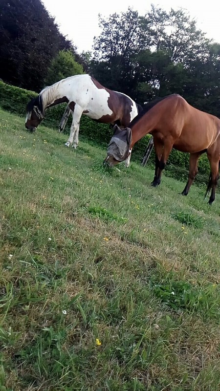C'est un vrai bébé, il joue et trouve toujours des bêtises à Faire comme enlever le jet d'eau quand je suis en train de remplir l'abreuvoir du pré, et au passage m'arroser etc