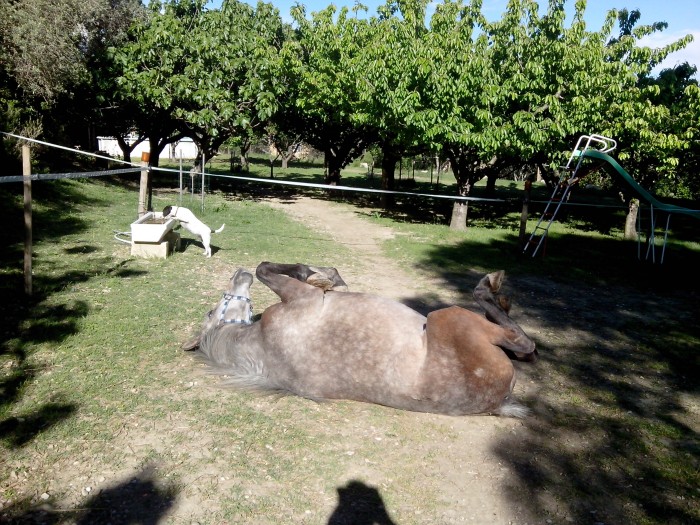 Et bien, avec Vita, on a répéter la jambette et je les fait brouter, c'était un repos pour elle aujourd'hui :)