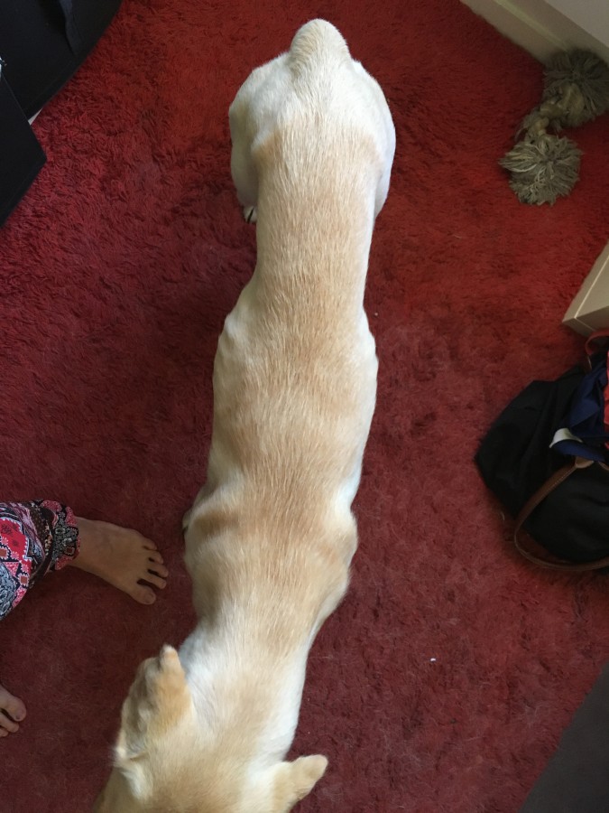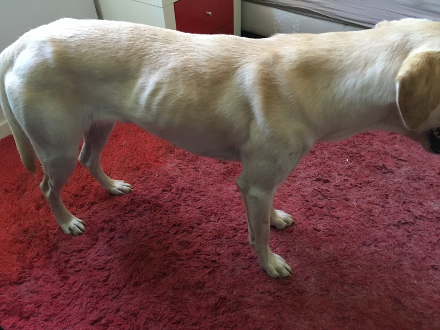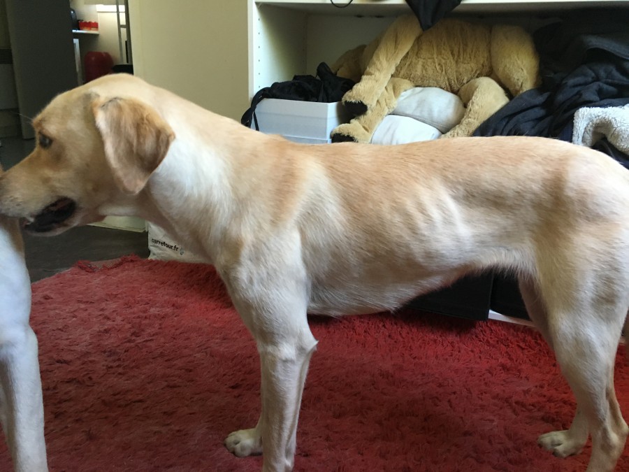 Pourrais tu faire des photos de la chienne en statique vu de profil ainsi que de son dos/hanches "vu d´avion" ?