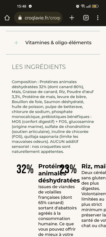 L'aliment convient bien a ma grande sphynx , mais pour les deux autres non , j'ai regarder les liens indiqué dans la 1ere page et je ne savais pas qu'il fallait donner en complément de la pâté pour les chats , mais même en rajoutant de la paté , je vois bien que mes croquettes ne convient pas au deux nouveaux ( ca fait bien 1 mois )