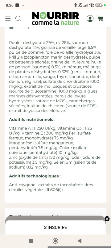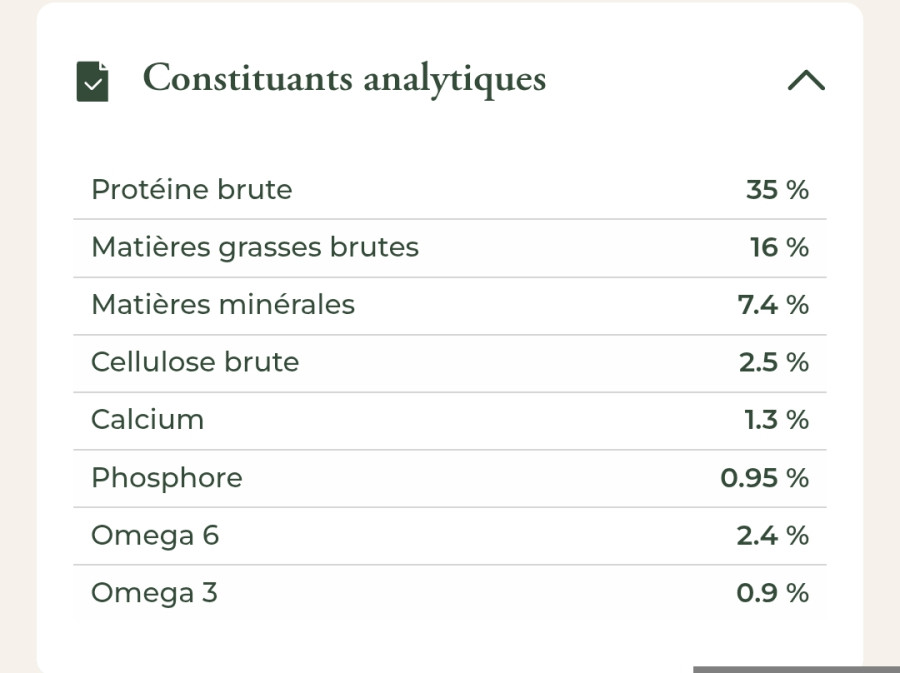 Dans ce cas c’est un peu trop élevé dans les croquettes mais c’est annoncé