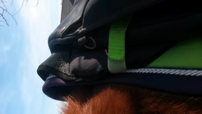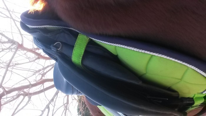 Par contre, ce jour là, il faisait froid et mon cheval était très décontracté. Et en touchant l'amortisseur, une vrai bouillotte! Mon cheval était très décontracté!