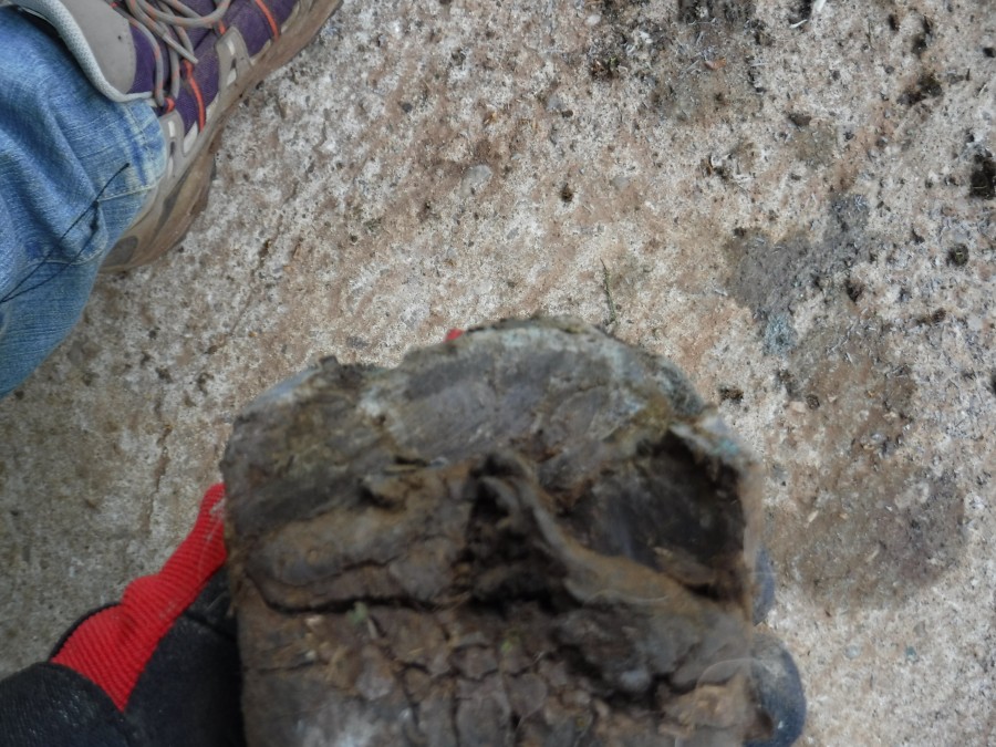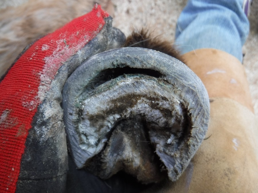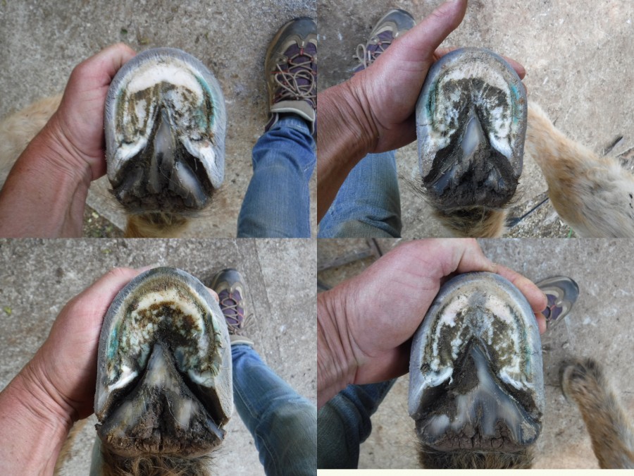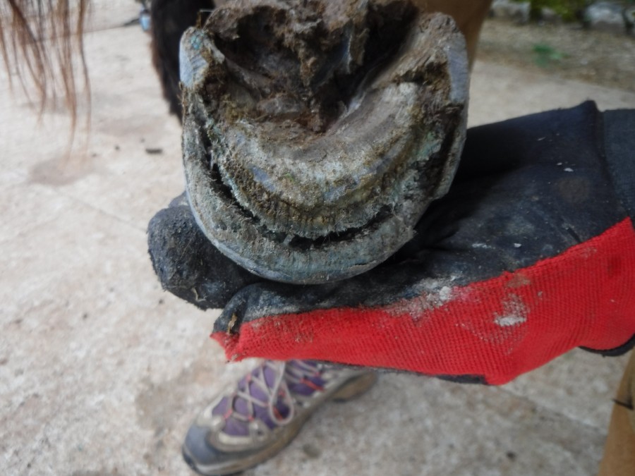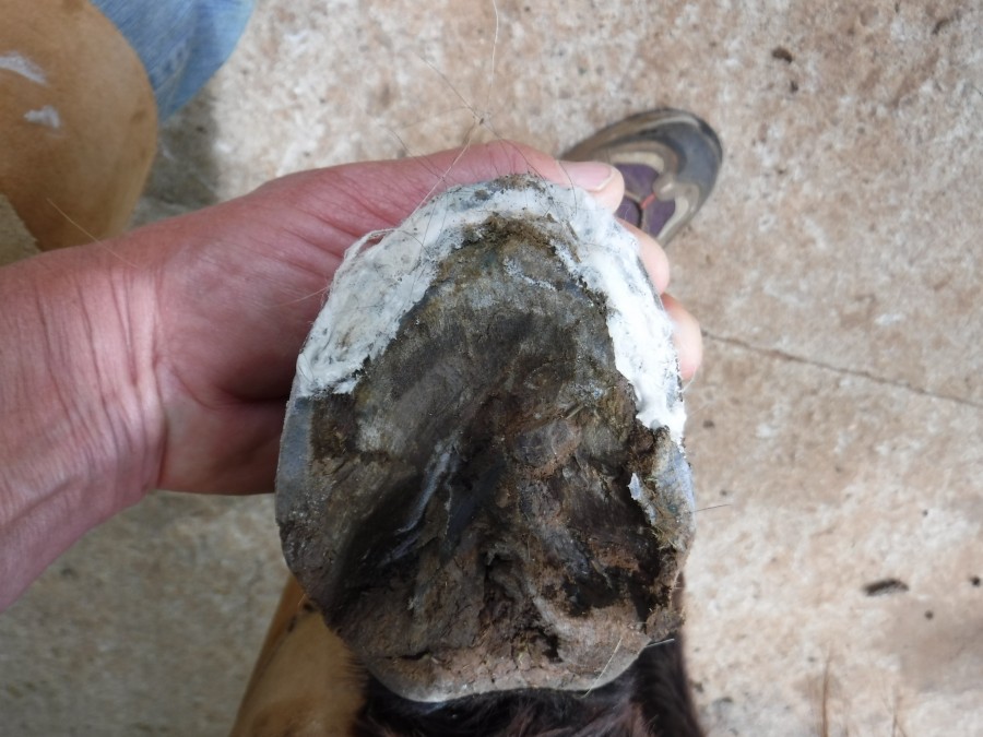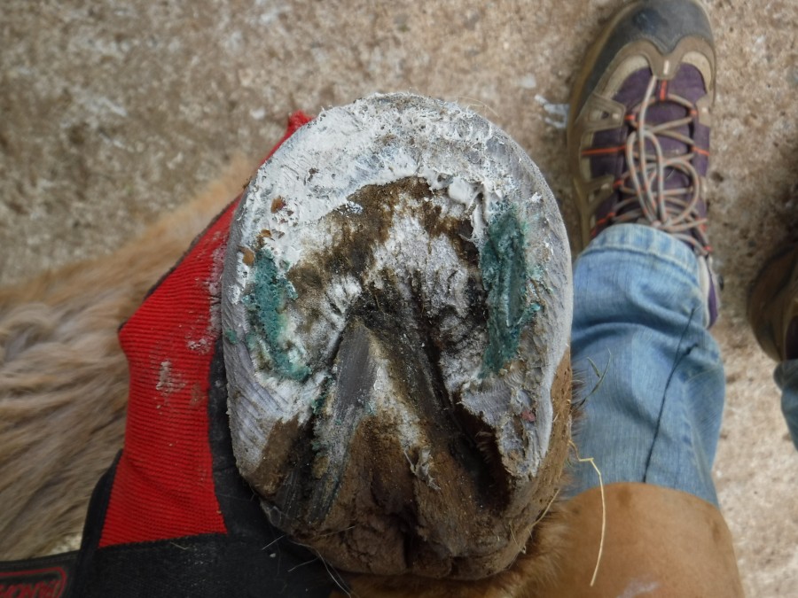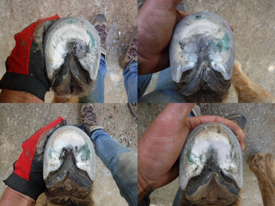 Ici la paroi en quartier et en pince je n'ai fait que le chanfrein, par contre aux niveaux des talons j'ai également donné un coup de rappe à l'horizontal et ensuite chez fait le chanfrein.