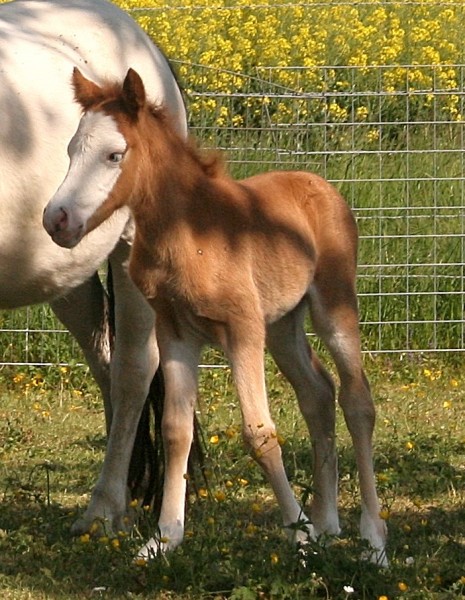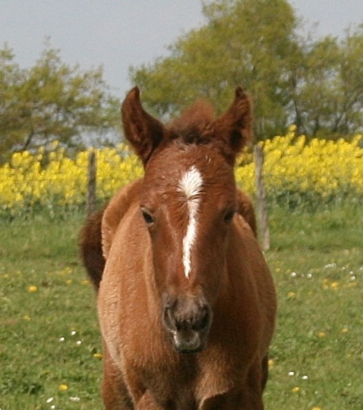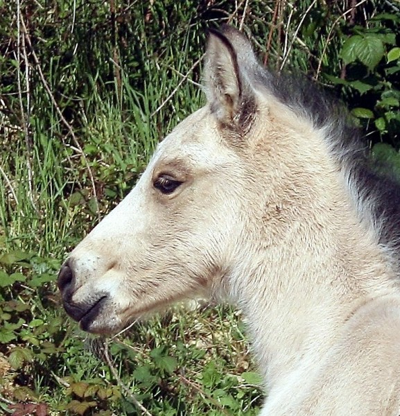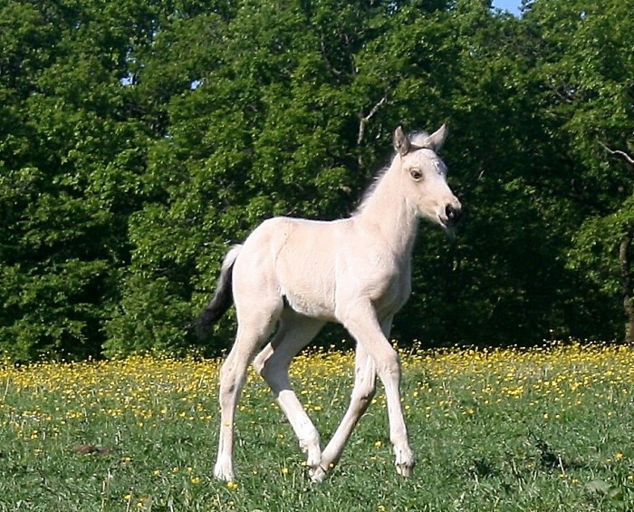 Eole du Vallon, pouliche née le 23 avril 2014 par Cap Kennedy*Bois Margot (Holsteiner) et Isis des Carais (SFA). Elle va sans doute devenir grise!