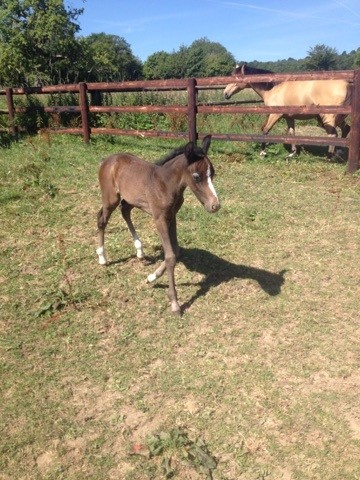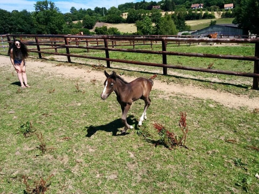 Fendi a un petit peu grandit mais s'est surtout bien remplie. Je la trouve belle morphologiquement même si c'est vrai qu'elle est petite. Elle a un petit défaut d'aplombs, elle a les genoux arqués. Cela devrait se régler avec le maréchal qui attend qu'elle grandisse encore un peu avant d'intervenir.