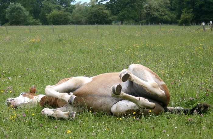 Une heure plus tard j'ai retenté une approche et ai cette fois réussi à lui caresser l'encolure avec..... et à lui passer autour sans qu'elle ne bouge. J'ai laissé 2 minutes et lui ai enlevé.