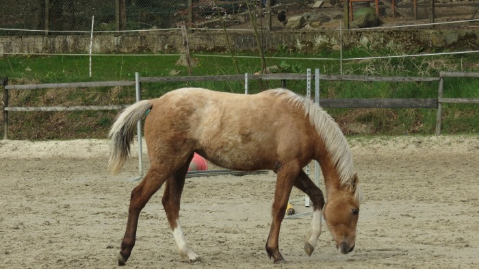 Sa fille, née palomino, a des poils blancs discrets mais présents et à mon grand malheur, je ne me fais aucune illusion, elle va griser aussi...