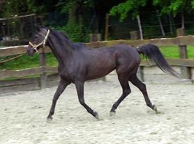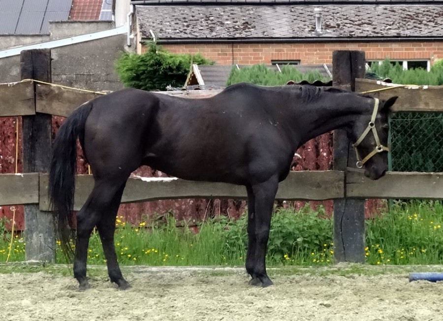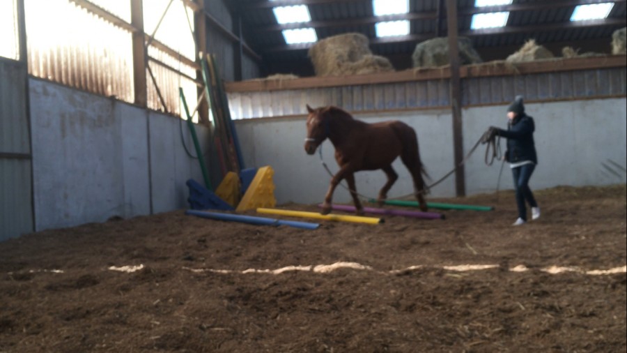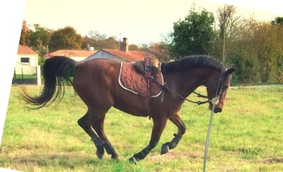 Je me demande vraiment s’il a besoin de cet enrênement car il est par ailleurs plutôt bien musclé avec une jolie sortie d’encolure. Donc, il a des moyens pour se tenir seul et certainement bien mieux que ce que montre les photos. aiidons-les, As-tu essayé de le longer sans ficelle ? Quelle attitude prend-il dans ce cas ?