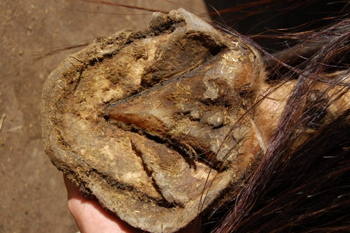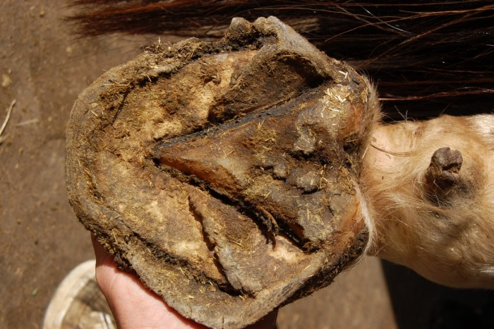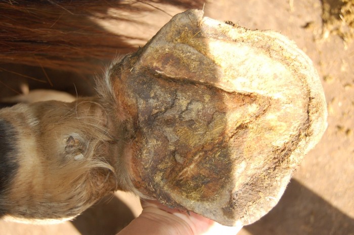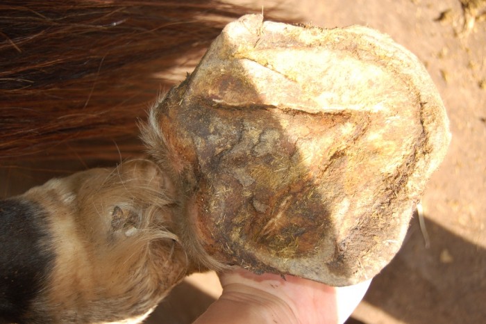 Aujourd'hui, ma jument n'a toujours pas été parée. Aux antérieurs les pieds poussent peu et ne s'abîment pas.