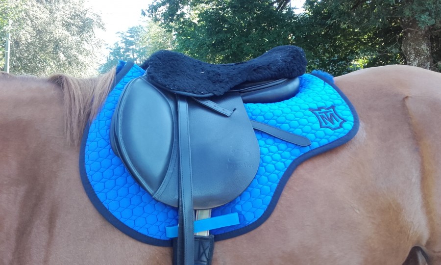Voici une photo de mon tapis mattes sur ma juju. Au final, la coupe obstacle va même mieux que la mixte, pourtant ma selle est bien mixte