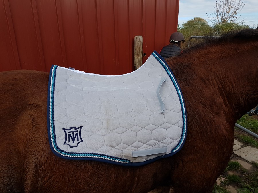 Par contre deux selles parfaitement adaptées, et un cheval avec une morphologie très angulaire (haut garrot, pas le dos rond)
