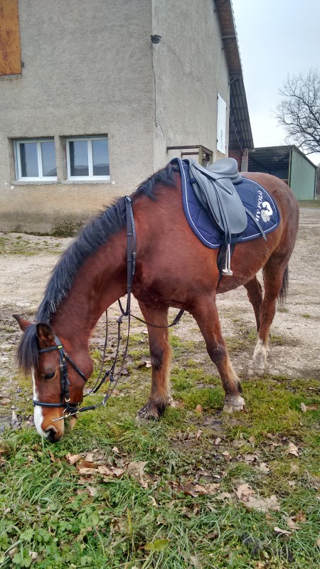 7 ans, 1m50, facile à monter, a fait de l'endurance, un peu de saut ...