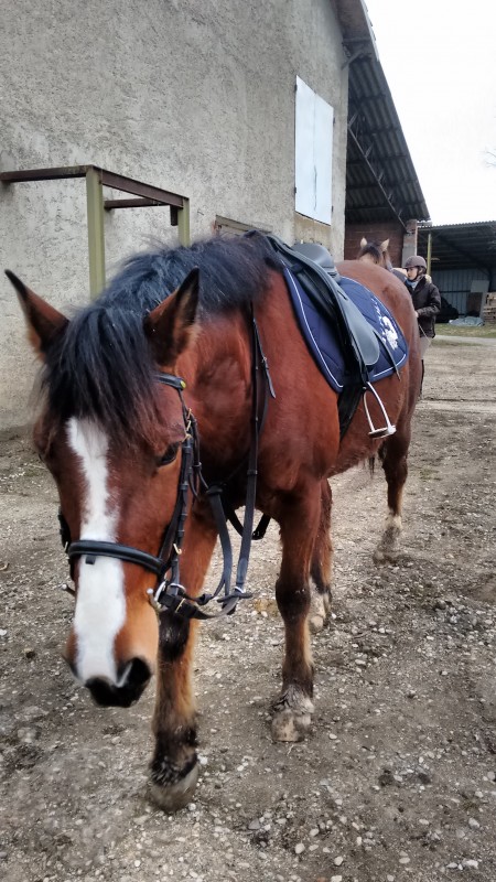 J'arrive maintenant à l'avoir sur la main en engageant bien les postérieurs au pas et au trot, son galop est plus régulier. On commence doucement l'obstacle mais je privilégie le travail sur le plat et l'extérieur, d'ailleurs demain, c'est balade de 2h/2h30 qui nous attend !