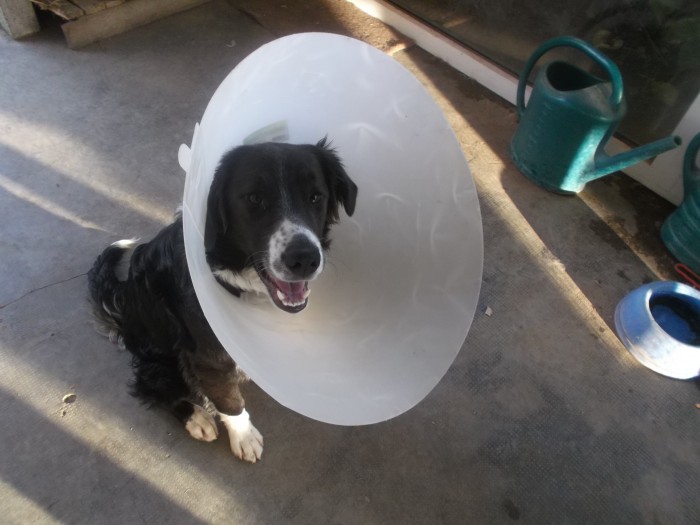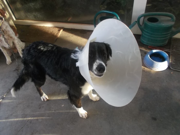 Comme j'avais dit que je mettrai des photos de Jessy avec sa nouvelle collerette, les voilà.