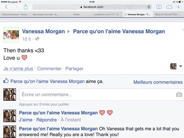 Voici ce qu'elle à écrit sur ma page ! Je suis comme une folle !