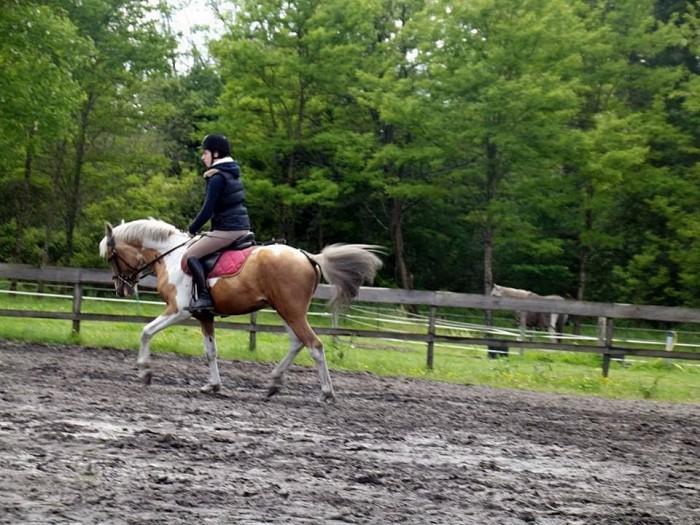 Malgré un dos supra-court, je lui trouve le rein un poil long pour la taille de son corps (mais qui serait de la bonne taille si le dos et la croupe étaient proportionnels à l'avant-main, je ne sais pas si je suis claire). Par contre sa croupe est un peu saillante et fuyante...