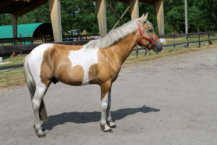Il a l'avant-main plus longue que le corps et l'arrière-main réunis, et je trouve qu'entre la fin de son garrot et la dernière côte, il n'y a pas beaucoup de place... Sa clé de voûte me semble très décalée par rapport au passage de sangle et à mon avis, il doit être difficile à seller correctement.